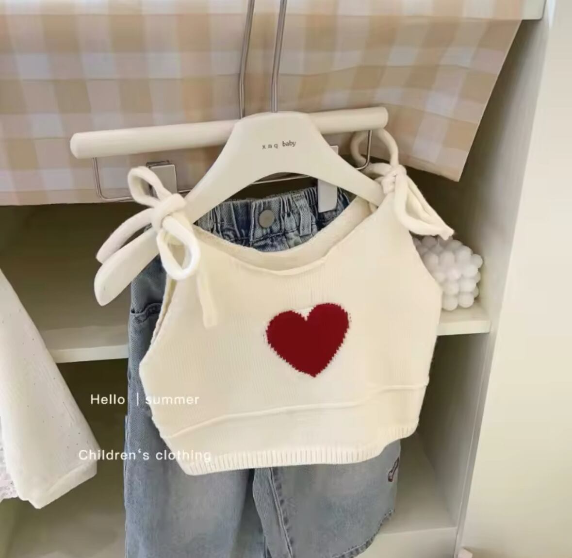 kidsハートニットキャミ&デニムセット